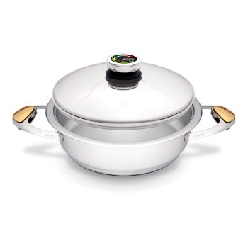 Lenyűgöző sokoldalúság jellemzi ezt a nagy méretű Zepter Masterpiece edényt. Ideális szárnyasok, húsok, rizsételek, tésztaételek, levesek, zöldségek, curry-k, halételek, krumpli, és számos egyéb étel nagy mennyiségű elkészítéséhez. Paradicsomlé, lekvár, és kompót készítésére is alkalmas. Az egészséges, alacsony hőmérsékletű főzést a Zepternél a csúcsminőségű 316L nemesacél, az akkutermikus kompakt edényalj, valamint a hermetikusan záró edényperem és fedő együttese biztosítja.